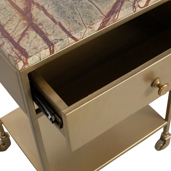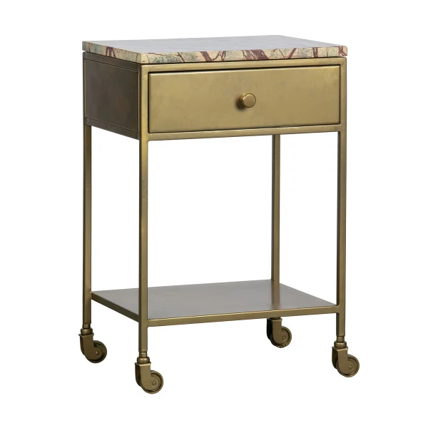 Nachtkastje op wielen goud marmer