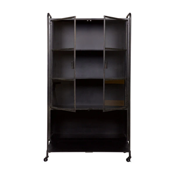 Voor de vitrinekast BePureHome Steel máák je plaats in de woonkamer. Het vintage design voegt karakter en sfeer toe, en bovendien gaat het zwart metaal samen met vrijwel elke kleur meubel of muur. Dankzij de wielen verrijd je de vitrinekast eenvoudig naar een nieuwe plaats in huis.