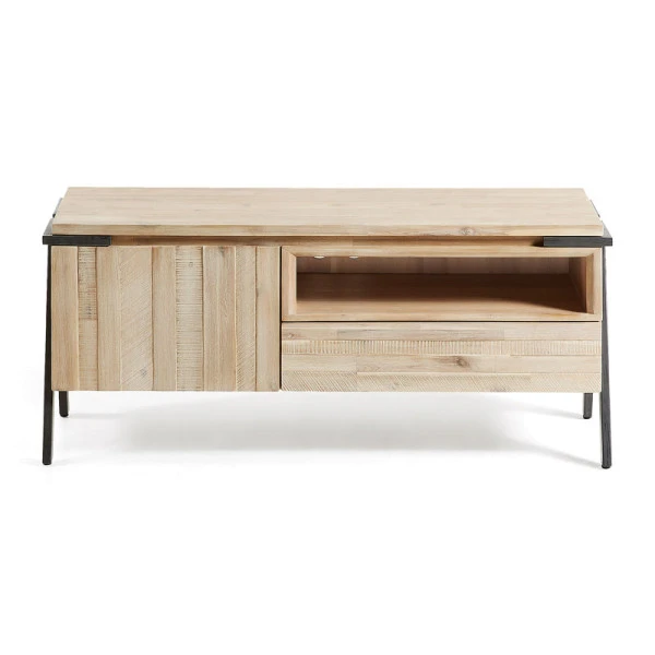 Dit Kave Home Thinh tv-meubel is ontworpen in de perfecte mix van stijl en sfeer. Het acaciahout geeft het tv-meubel een robuuste, natuurlijke uitstraling. Poten van metaal zorgen echter voor een modern design! Zet je apparatuur in het open vak, berg afstandsbedieningen op in de lade en geef films of spelcomputers een eigen plekje achter de houten deur.