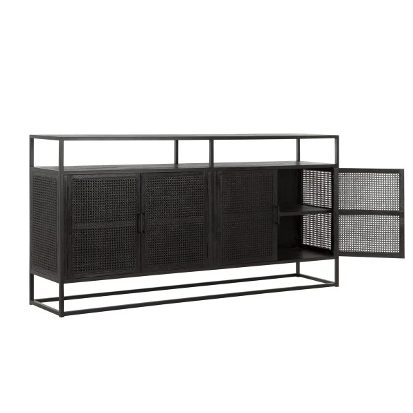 Dit Must Living Spiderman dressoir heeft een stoere uitstraling, maar het rotan zorgt voor een bijzonder geheel. De webbing deuren en zijdes zijn zwart, net als het metalen frame. Met een breedte van 180 centimeter kun je heel wat spulletjes kwijt in dit dressoir! Je witte serviesgoed vormt een gezellig silhouet achter de rotan webbing deuren. Het open vak en bovenblad bieden plaats aan decoraties.