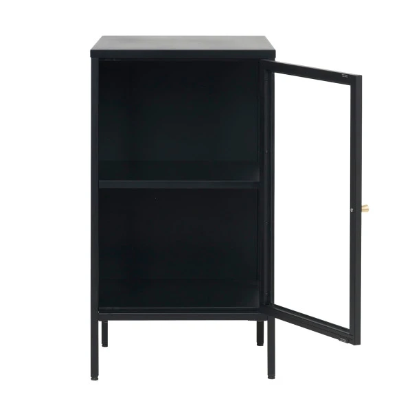 Dit glazen kastje vormt een stijlvolle decoratie in je interieur, zeker wanneer je de vakken vult met mooie wijnglazen of kunst. Het kastje is heerlijk compact: met een hoogte van 85 centimeter kun je deze zelfs als artistieke bijzettafel gebruiken in de zithoek. Of geef het glazen kastje een mooie plek tussen de planten en zet er de souvenirs in die je van verre reizen hebt meegenomen.