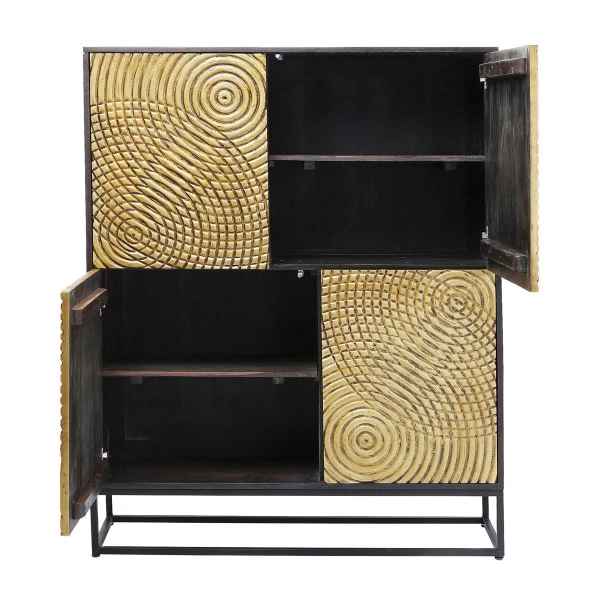 Je herkent de Kare Design Circulo serie meteen aan het bijzondere snijwerk en de gouden afwerking. De meubels zijn gemaakt van massief hout en gelakt staal. Kijk gauw verder voor een bijpassend dressoir om met deze gouden wandkast te combineren!