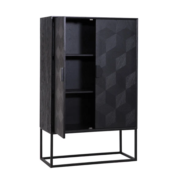 Kenmerkend voor de Richmond Interiors Blax serie is het hoogwaardige eikenfineer met een subtiel, geometrisch patroon. In het zwart hout zie je ook de prachtige lijnen van de natuur nog mooi terug. Combineer de grote kast met een bijpassende salontafel en bijzettafel!