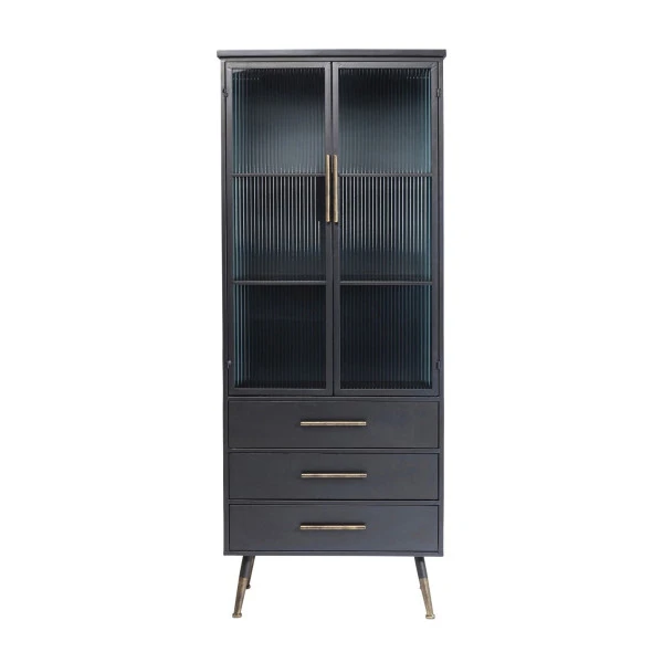 - Met 2 deuren van geribbeld glas en 3 lades van metaal