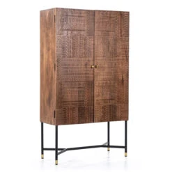- Gemaakt van mangohout met houtsnijwerk op de deuren