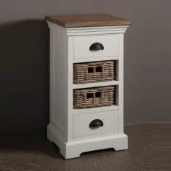 Deze Tower Living Napoli ladekast van 75cm hoog kun je heel goed als bijzettafel gebruiken in de zithoek, of zet in de hal met een mooie groene plant erop! De manden en lades vul je dan met handschoenen, hondenriemen en post. Of gebruik de ladekast voor losse rommeltjes in de woonkamer, zodat deze er eindelijk eens opgeruimd uitziet.