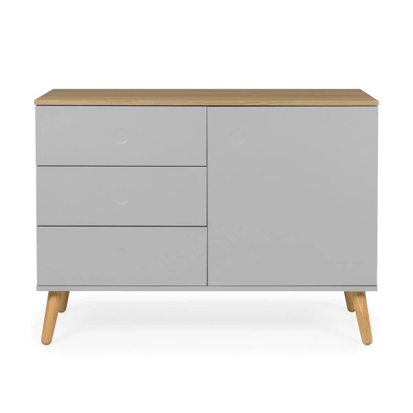 De meubels in de Tenzo Dot serie zijn verkrijgbaar in verschillende kleuren. Zo heb je bij deze lage wandkast keuze uit een mix van eiken met wit, grijs of groen: welke is jouw favoriet? Kijk gauw verder voor een bijpassend tv-meubel om mee te combineren!