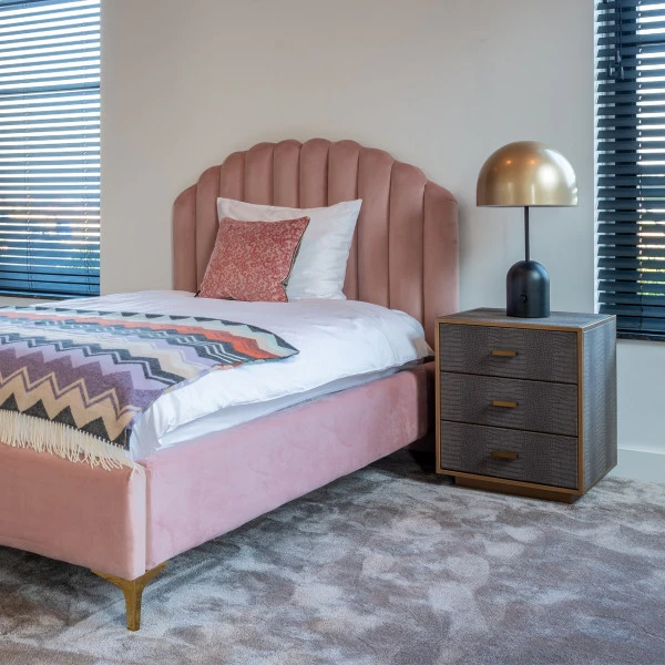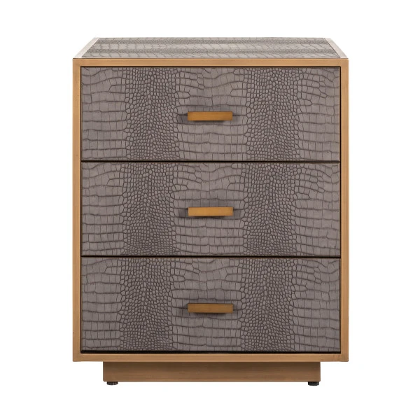 Met het Richmond Interiors Classio nachtkastje naast de zijden lakens op je bed krijgt je slaapkamer wel een hele luxe uitstraling. De bekleding is gemaakt van hoogwaardig kunstleer met een voelbare slangenleer- structuur; een omlijsting van goud maakt het nachtkastje compleet! In de drie lades is alle ruimte voor boeken, nachtcrèmes en opladers. Je kunt het meubel ook als ladekast gebruiken in de woonkamer.