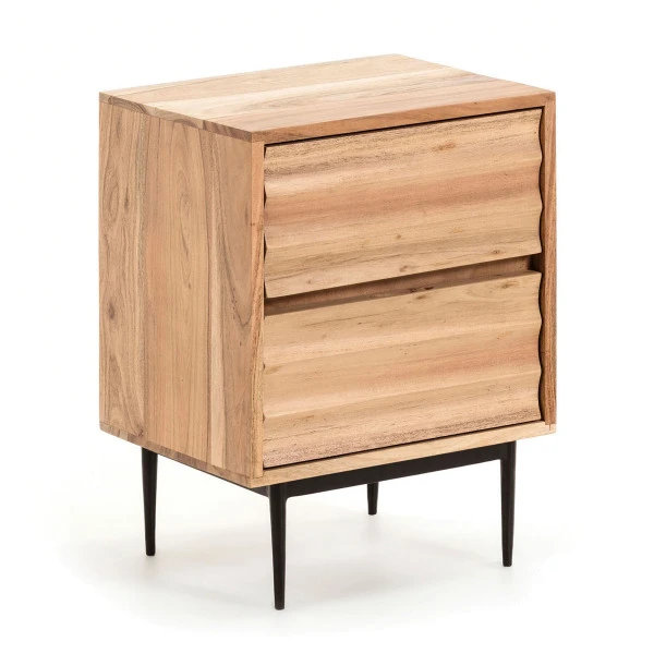 Van het Kave Home Delsie nachtkastje knapt elke slaapkamer op! Het licht hout brengt sfeer en zit vol natuurlijke details. Een golvend patroon in de lades geeft het handgemaakte nachtkastje een design look. Berg je leesboek, oordopjes en telefoon netjes weg in de lades van het nachtkastje: in een opgeruimde slaapomgeving val je binnen de kortste tijd in slaap!