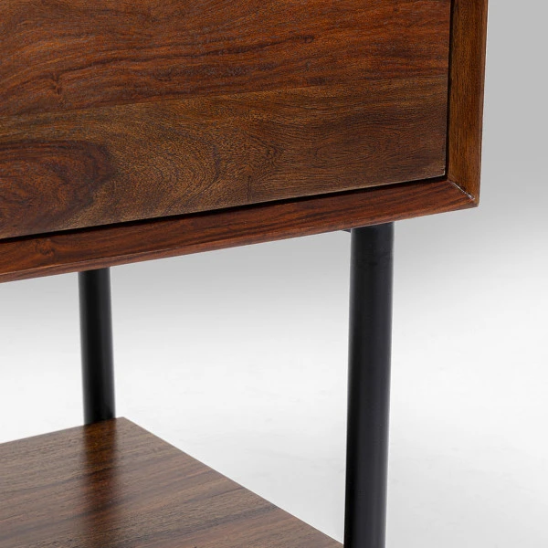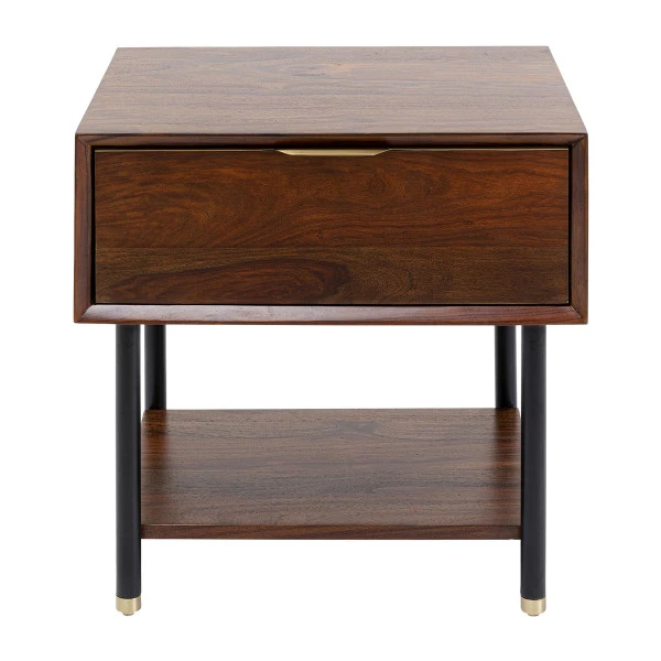 Met het Kare Design Ravello nachtkastje creëer je een warme, retro sfeer in de slaapkamer. De messing details gaan prachtig samen met het sheeshamhout! Omdat het nachtkastje voorzien is van een lade en open vak kun je deze aan beide kanten van het bed gebruiken. Bovenop het blad van sheeshamhout is alle ruimte voor een leeslamp, je leesboek en een glas water.
