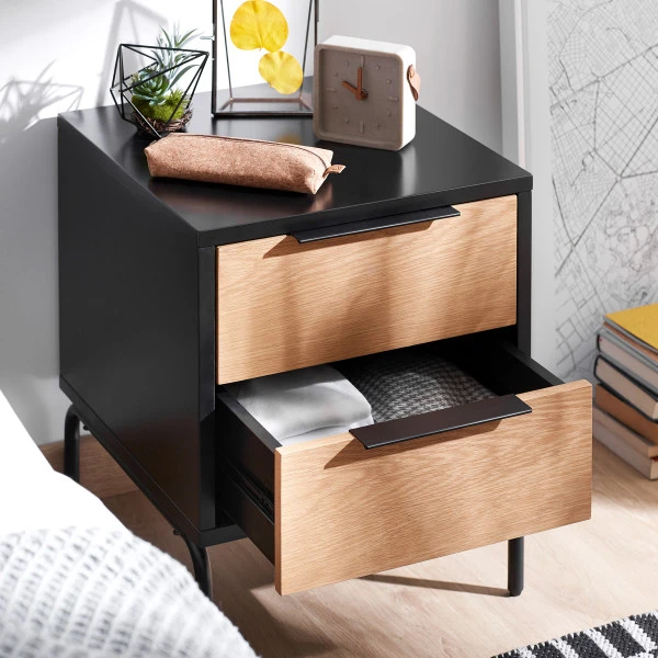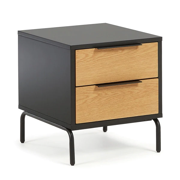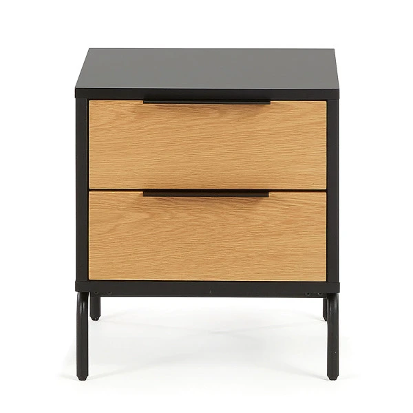 Het Kave Home Savoi nachtkastje heeft een tijdloos design dat samengaat met verschillende interieurstijlen. In de ombouw van mat zwart gelakt hout zorgen de naturel eiken lades voor een sfeervol element! Bovendien helpen ze je om je slaapomgeving netjes te houden. Berg er alle rommeltjes in op – van oordopjes tot tijdschriften- zodat je in alle rust kunt slapen! Bovenop het nachtkastje hoeft dan alleen je leeslamp te staan.