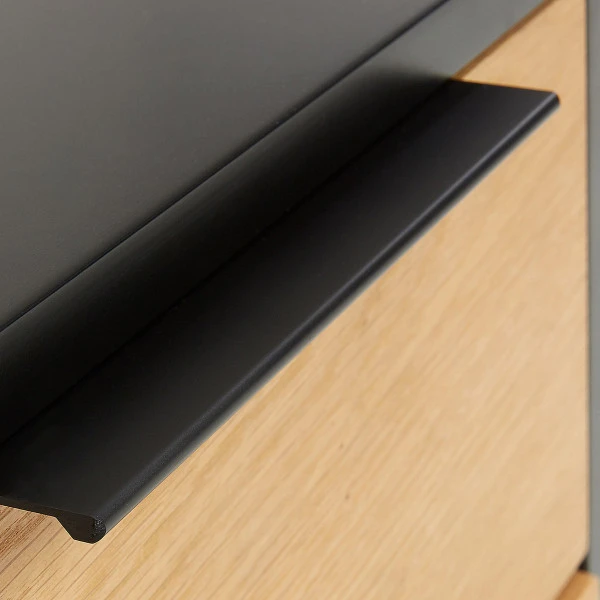 Kenmerkend voor de Kave Home Savoi serie is de mix van naturel en mat zwart gelakt eiken. Details van zwart gelakt metaal zorgen voor een stoer accent. Zet het nachtkastje naast je bed en maak de slaapkamer compleet met een bijpassende ladekast voor je ondergoed en sokken!