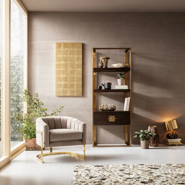 Voor de open Kare Design Osaka wandkast van messing met hout máák je plek in de woonkamer. De mix van materialen geeft de wandkast een chique uitstraling, en je kunt deze helemaal naar wens inrichten voor een persoonlijke draai aan de kast. Zet er bijvoorbeeld wijnglazen en boeken in, of vul de kast juist met beeldjes en foto’s. In de lade is plaats voor losse rommel.