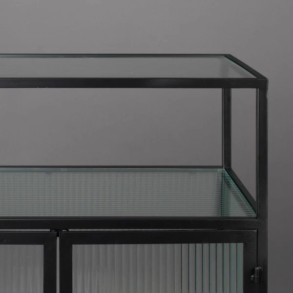 Je herkent de Dutchbone Boli serie aan de mix van zwart metaal en ribbelglas. Behalve dit compacte wandkastje vind je in de serie ook een hoge wandkast, een ribbelglas dressoir en een vitrinekast. Of zoek je nog een bijpassende salontafel?