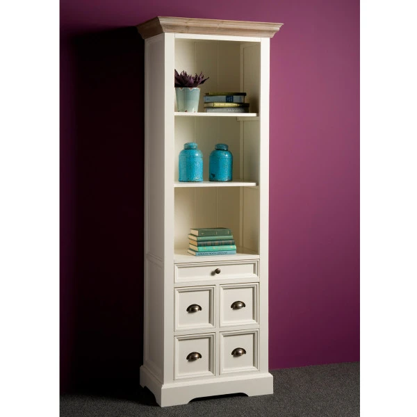 De witte Tower Living Fleur boekenkast vormt een mooie basis voor een romantisch landelijk interieur. Een vergrijsd houten blad zorgt voor extra sfeer in het witte geheel, en je kunt zelf zoveel kleur als je wenst toevoegen met vrolijke boekenkaften of andere decoraties. De witte boekenkast biedt bovendien opbergruimte in de vorm van lades, zodat je voortaan een vaste plek hebt voor losse rommeltjes!