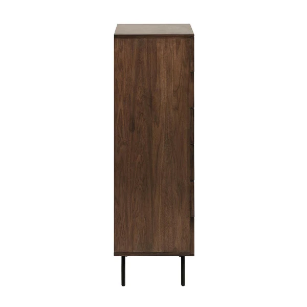De meubels uit de Kave Home Cutt serie zijn ontworpen door Jordi Dedeu. Je herkent het design meteen aan de details van zwart metaal te midden van het warme walnoot! Deze ladekast is verkrijgbaar in een smalle en brede variant. Ook vind je in de serie een walnoothouten dressoir en tv-meubel.