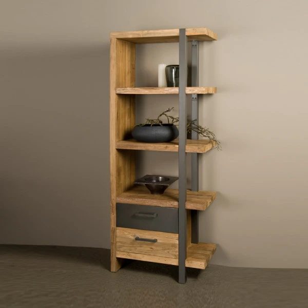 Deze Tower Living Lucca wandkast valt op dankzij een asymmetrisch design, met een strook van metaal in het teakhouten geheel. De perfecte basis voor je verzameling souvenirs van verre reizen! Of vul de wandkast van teak en metaal met wijnglazen, plantjes en fotolijsten. In de twee lades is plaats voor rommeltjes die je liever uit het zicht bewaart.