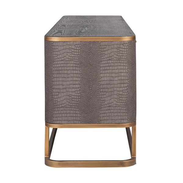 De meubels uit de Richmond Interiors Classio serie zijn gemaakt van hoogwaardig, vegan kunstleer met een voelbare slangenleer structuur. De omlijsting in vintage goud maakt het tv-meubel compleet! Ook voor een luxe salontafel of sidetable kun je terecht in de Classio serie.