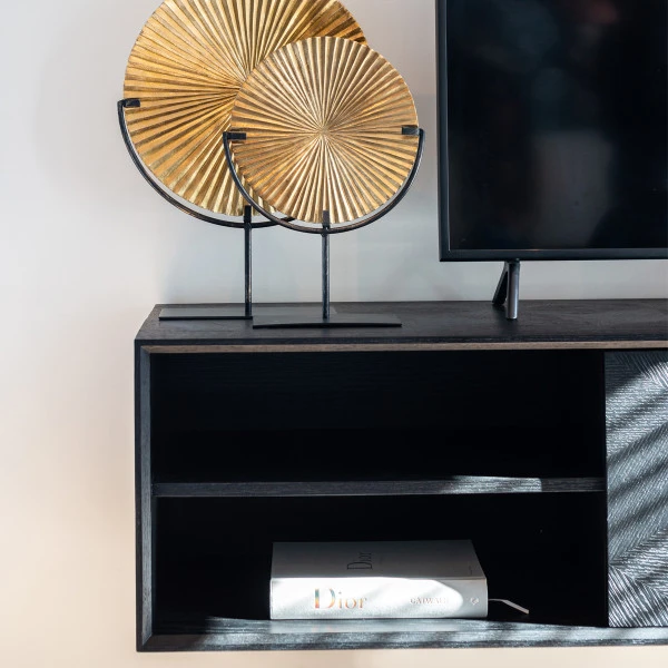 Het Richmond Interiors Blax tv-meubel vormt een prachtig geheel met je televisiescherm en apparatuur. Het zwart hout is voorzien van een subtiel patroon dat het tv-meubel een eigentijds karakter geeft! Met een breedte van 180 centimeter kun je in dit tv-meubel ook nog veel spullen kwijt. Zet apparatuur in de open vakken en berg wijnglazen, boeken en spelletjes netjes op achter de deuren.