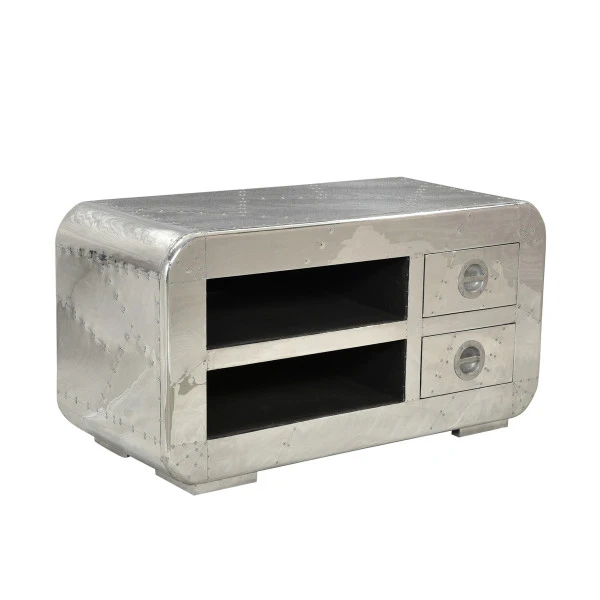 - – Tv-meubel van mangohout en met aluminium beslagen MDF