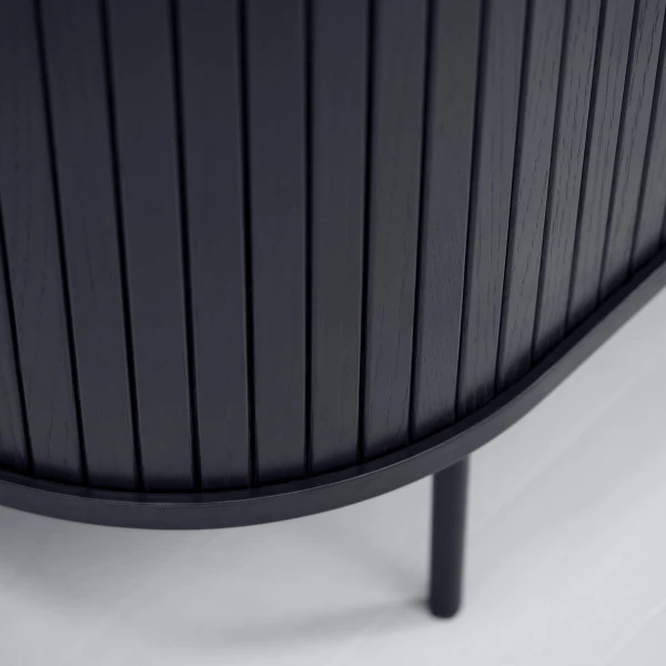 Met dit tv-meubel van zwart eiken creëer je een retro sfeertje in huis. Dat komt door de ronde lijnen, het reliëf in de deuren en de speelse poten. Ook leuk: je kunt de deuren een stukje openzetten! Vul het tv-meubel met gezellige decoraties of zet je apparatuur in de vakken. Het tv-meubel is met 120 centimeter breedte lekker compact: ideaal voor in een krappe zithoek.