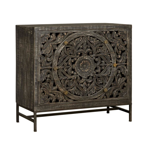 Zwarte ladekast vintage snijwerk