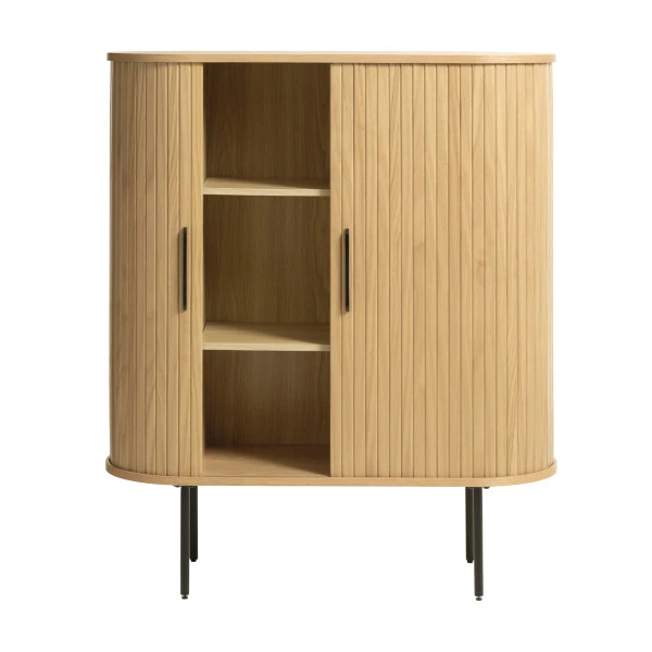 Deze wandkast staat gezellig met dichte én open deuren. Tenminste, als je de wandkast vult met mooi servies of je favoriete boeken. Naar wens kun je de schuifdeuren een stukje openzetten. Of verberg je er liever je administratie achter? De wandkast heeft een retro design met een naturel afwerking van het hout: daardoor brengt de wandkast een natuurlijke sfeer naar je woonruimte.