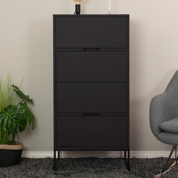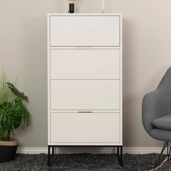 - Wandkast heeft 4 lades met de afmetingen: B: 56cm x D: 39cm x H: 32cm