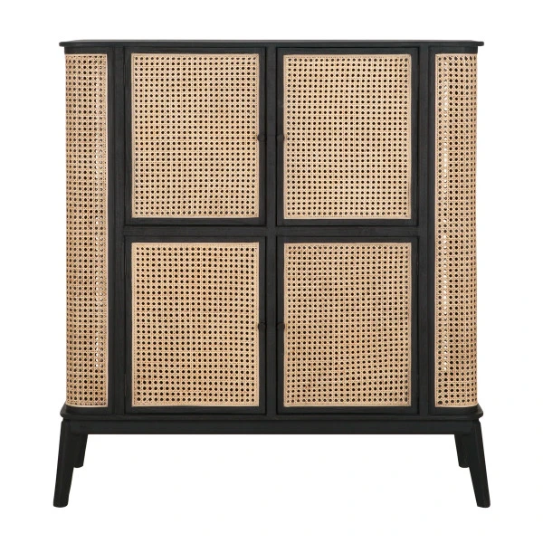 De Must Living Raffles wandkast brengt een gezellige retro look naar je woonkamer! De deuren en zijdes zijn gemaakt van naturel rotan webbing. Ook de ronde hoeken en de speelse, zwarte poten geven de wandkast een retro uitstraling. Achter de vier deuren is plaats voor boeken en fotoalbums, speelgoed en spelletjes, theemokken en wijnglazen; wat jij maar wil!