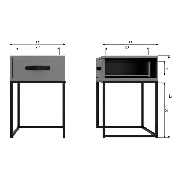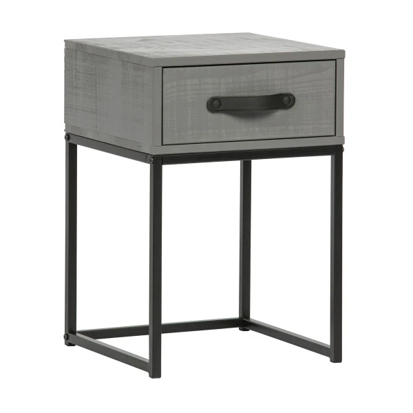Het Woood Morris nachtkastje is stoer en stijlvol tegelijk. De perfecte mix van moderne en industriële elementen. Je kunt het nachtkastje van grijs hout aan beide kanten van het bed gebruiken! Zet er een fijne leeslamp op en berg je boek, telefoon en nachtcrèmes netjes weg in de lade. Zo ziet je slaapomgeving er voortaan altijd rustig en opgeruimd uit.