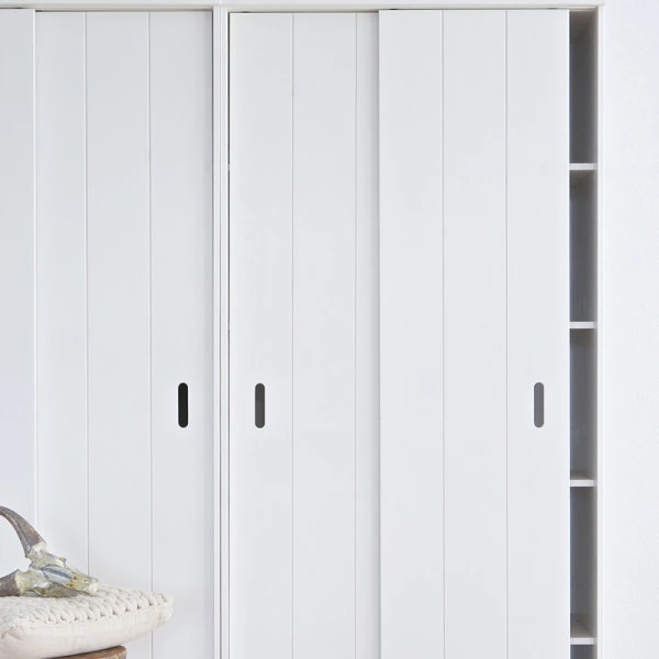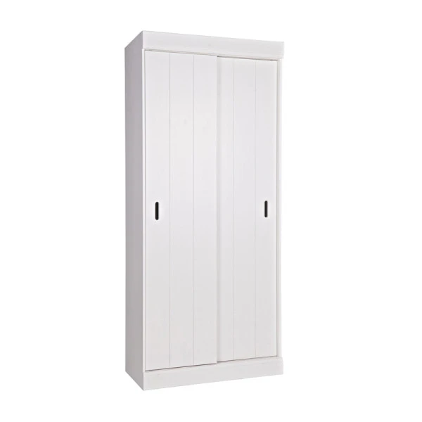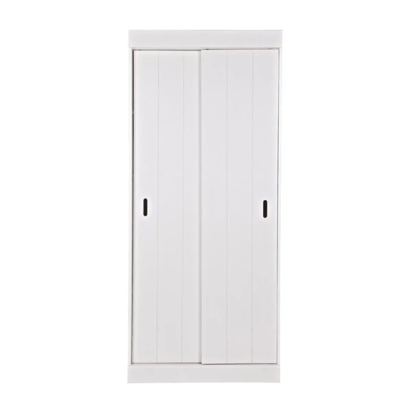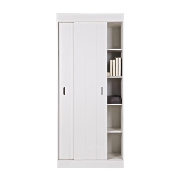 De witte Woood Row opbergkast is voorzien van handige schuifdeuren: ideaal voor in een krappe ruimte, waar openslaande deuren vaak alleen maar in de weg zitten. Met een breedte van 85 centimeter en 5 legplanken kun je in de grenen opbergkast heel wat spulletjes kwijt!