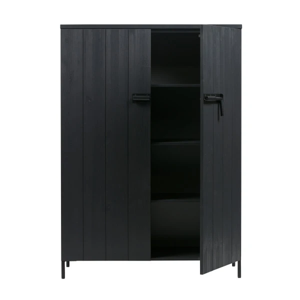 De houten Woood Bruut wandkast is stoer en lieflijk tegelijk. Is dat mogelijk? Blijkbaar: dat bewijst het sfeervolle design van de Bruut wandkast wel! De zwarte afwerking van het grenen zorgt voor een stoer effect, terwijl de verticale groeven een landelijke en romantische sfeer oproepen. The best of both worlds!