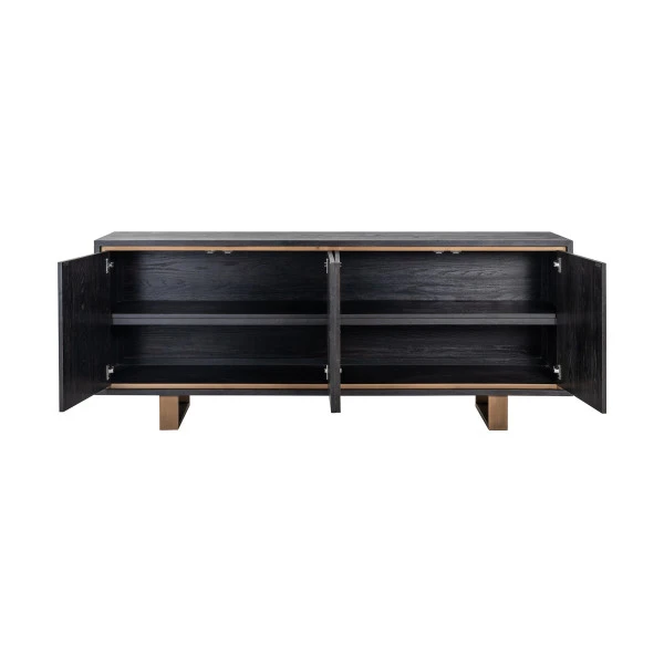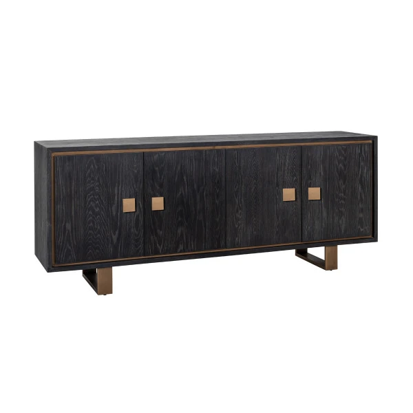 Het Richmond Interiors Hunter dressoir straalt veel luxe uit. Dat komt niet alleen door de elementen van mat goud; ook het hoogwaardig zwart eikenfineer geeft de kast een stijlvol karakter. Met een breedte van 200 centimeter biedt het dressoir bovendien veel opbergruimte. Vul het met serviesgoed of gebruik het dressoir voor spelletjes, administratie en manden met losse rommeltjes!