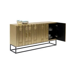 Dit DTP Home Criss Cross dressoir van 75 bij 94 cm is heerlijk compact: daar heb je altijd wel plek voor! Toch brengt het 2-deurs dressoir bijzonder veel sfeer naar je woonruimte. De deuren zijn namelijk ingelegd met verschillende kleuren teak in een jaren ’30 visgraat patroon. Slanke poten van metaal zorgen voor een design geheel. Gebruik het dressoir voor wijnglazen, administratie of spelletjes!