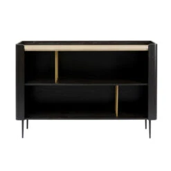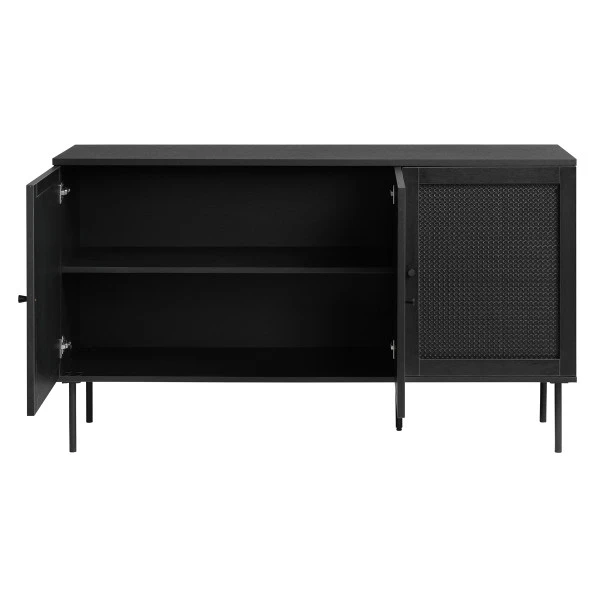 - Dressoir is gemaakt van zwarte melamine met rotan